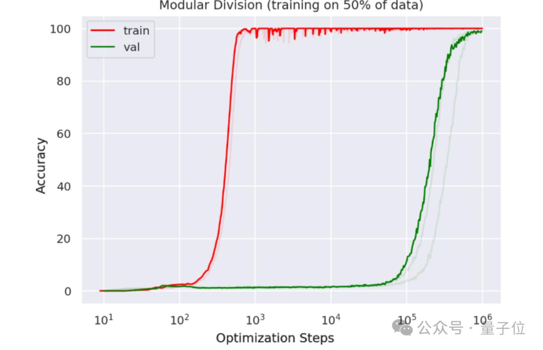 展开来说,作者们同样先介绍了grokking现象,即神经网络在长时间过度拟合训练数据后突然能够泛化的能力。