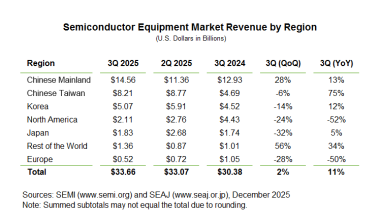 【一周数据看点】全球半导体设备Q3销售额增11%,中国大陆居榜首;iPad中国市场Q3出货量大跌14%;三星、小米、摩托罗拉位列拉美智能手机市场出货量前三……