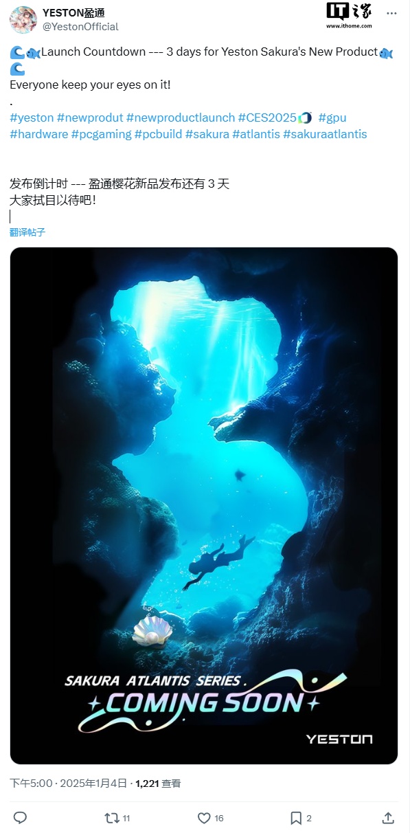 随之而来的还有各大厂商的 RTX 50 系列显卡新品,例如盈通今日发 X 表示将在 CES 2025 上推出新一代“樱瞳”。