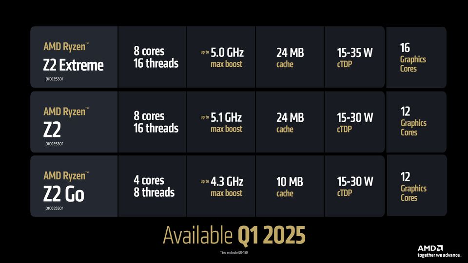 AMD Z2 系列 APU 预计将于 2025 年第一季度发布,届时搭载该系列处理器的首批掌机也将面世。