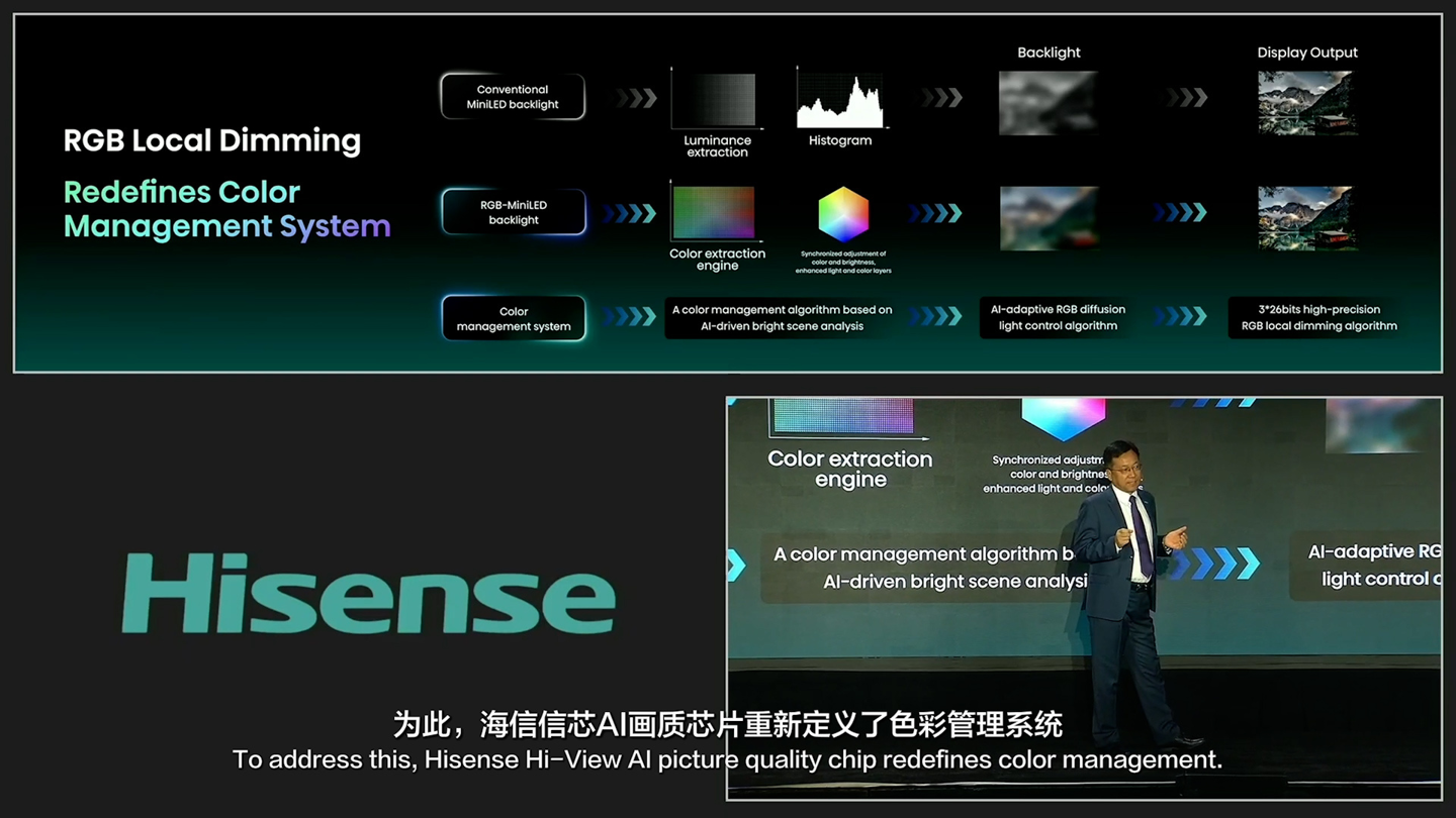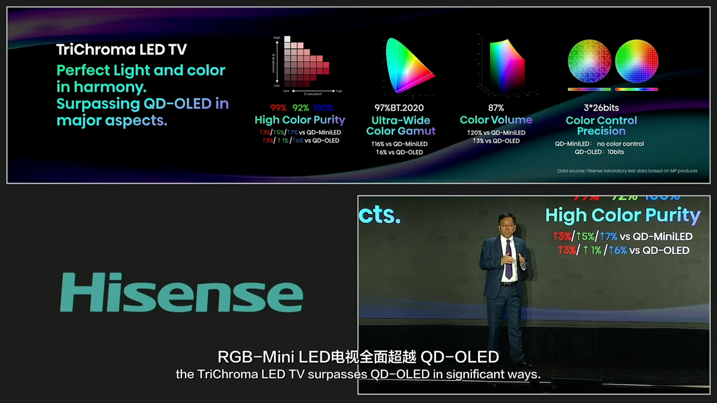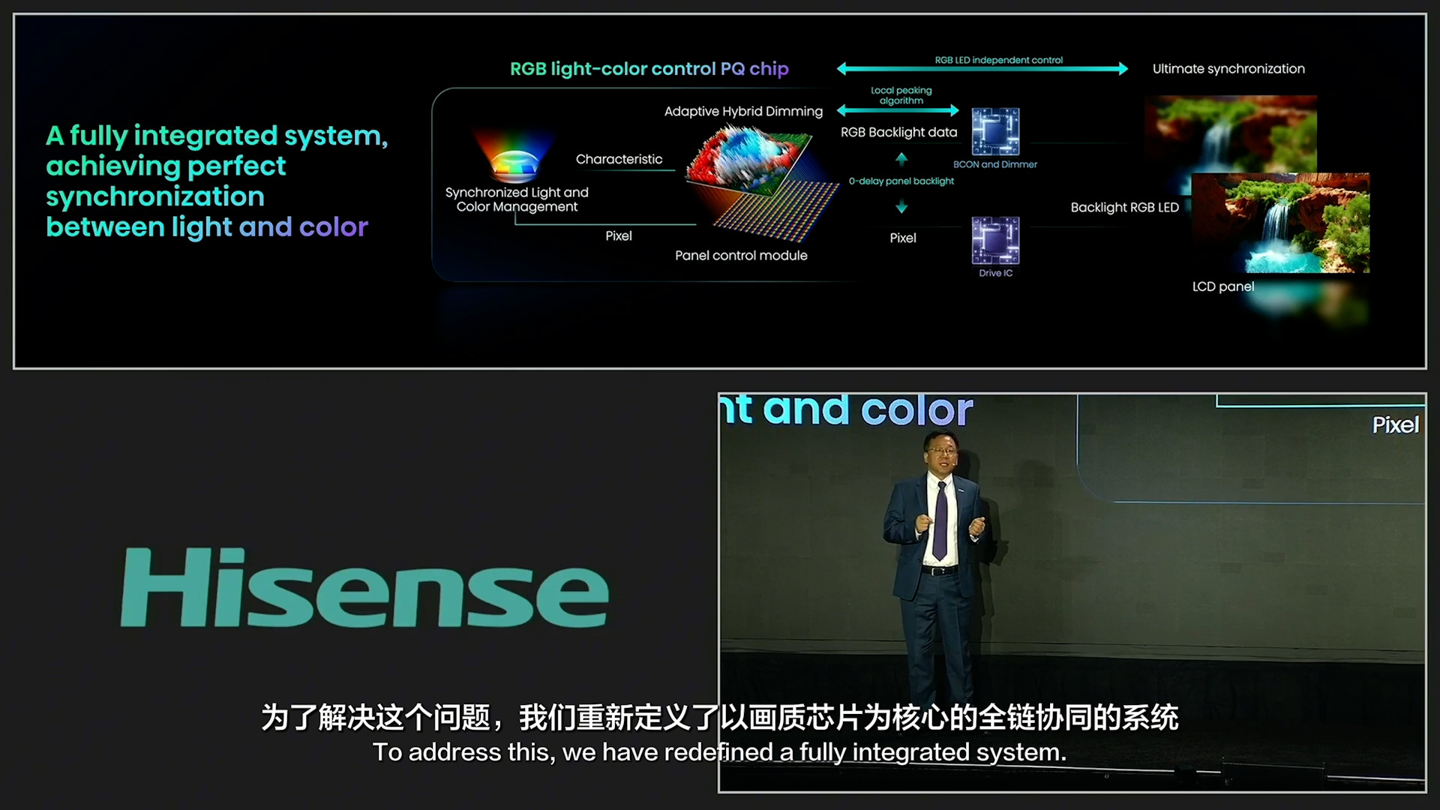 海信还实现了行业首个 RGB 三维控色芯片控制系统。