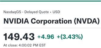 英伟达领涨科技股,一度涨超5%,股价自2024年11月以来首次突破150美元,逼近11月21日所创的盘中新高152.89美元,最终收涨3.43%,报149.43美元,创下历史收盘最高价,新年三个交易日齐涨。