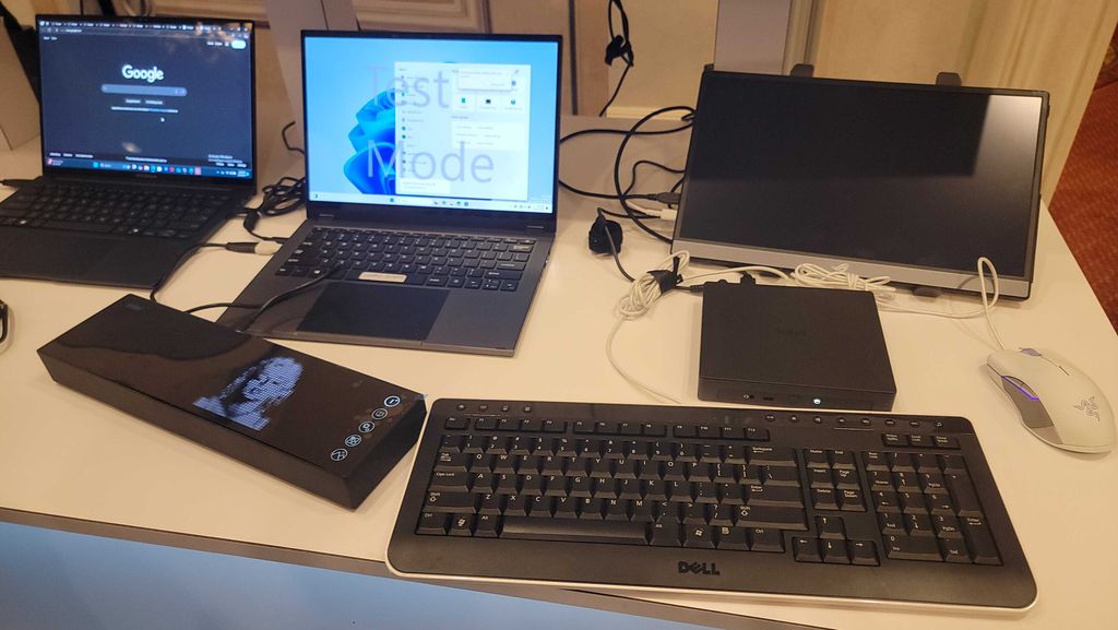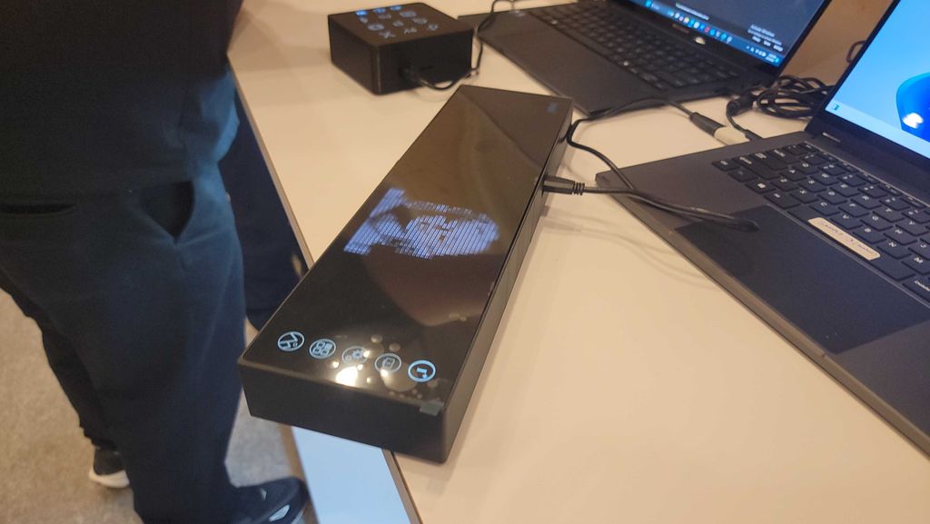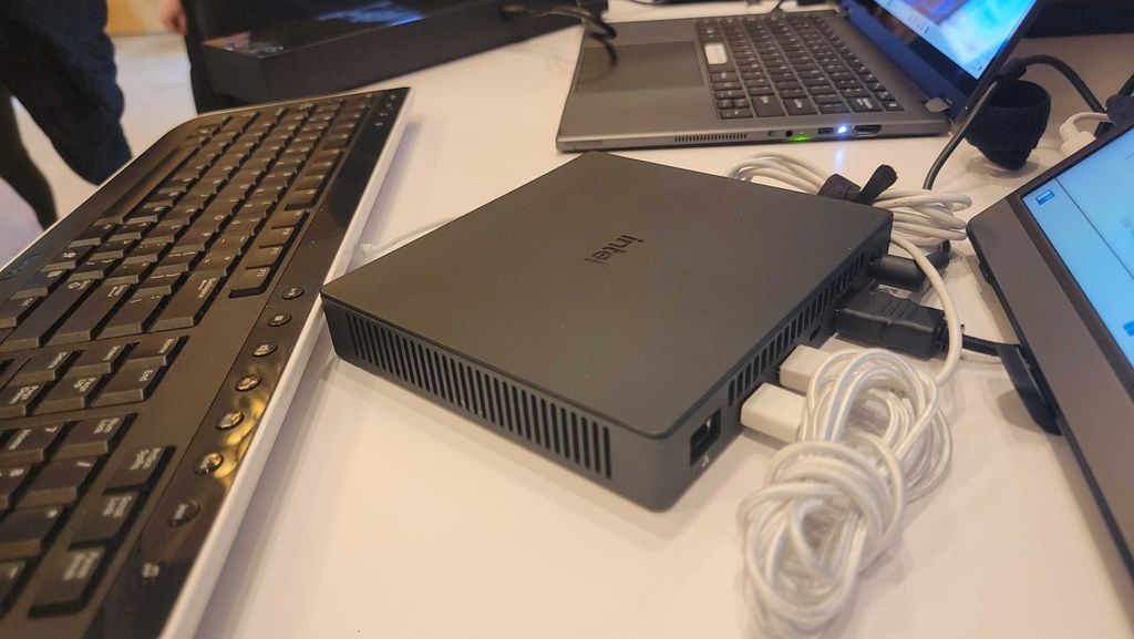 展出的三款迷你开发套件中,两款采用类NUC设计,另一款则配备了宽幅Mini LED显示屏,均印有英特尔标志。ODM笔记本电脑由纬创、和硕和仁宝提供,这三家公司都是与英特尔紧密合作的知名台湾ODM制造商。