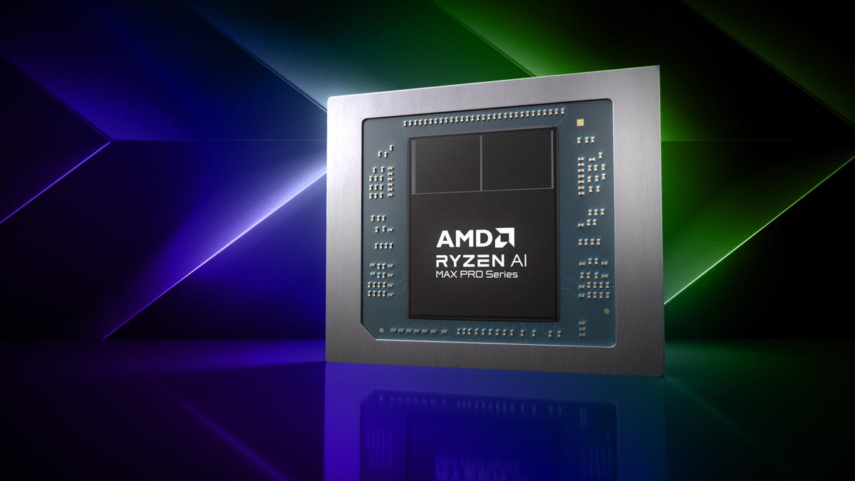 Ryzen AI Max Pro渲染图,专为商务/商用设计的Max芯片。AMD/CNET