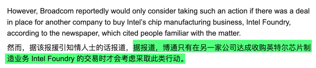 其实不难理解,博通本身就是 Fabless ( 无晶圆厂 )半导体公司,一心只想搞设计,不想搞制造;再者,如果博通把英特尔整个吞下,那么反垄断法大概率就要找上门了。
