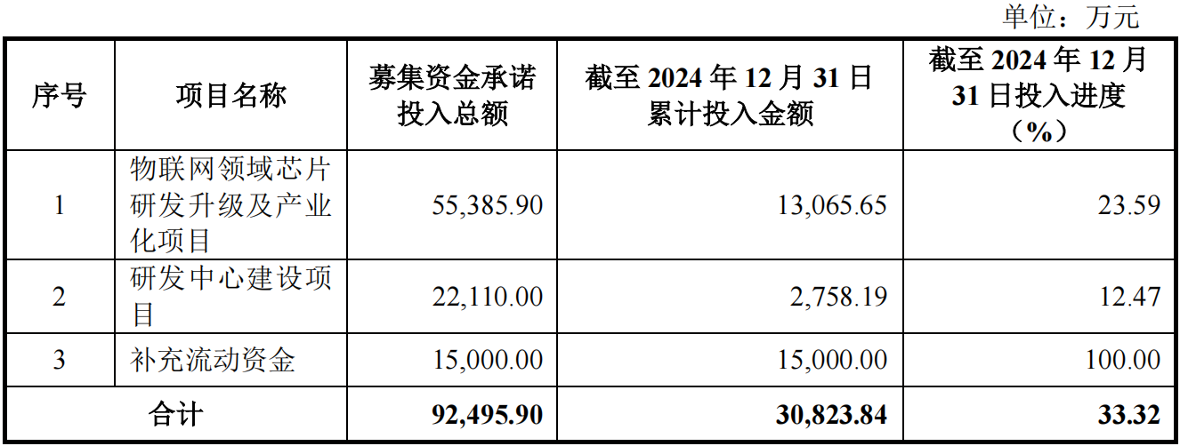 截至2024年12月31日,安凯微募集资金投资项目及使用情况如下:
