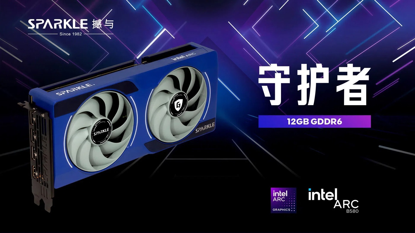 IT之家 2 月 18 日消息,撼与 Sparkle 官网现已上线英特尔锐炫 B580 GUARDIAN“守护者”显卡。该卡整体采用蓝色外壳搭配两颗白色风扇的外观设计,是一款标准频率和功耗的产品(IT之家注:2670 MHz、190W)。