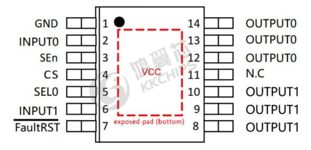 典型Rds(on)值:27 mΩ(IOUT = 3 A; Tj = 25°C)