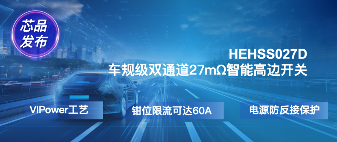 鸿翼芯HEHSS027D 双通道智能高边针对车身应用中阻性、感性及卤素灯负载等应用场景, 涵盖了车内饰灯、头尾灯、座椅和方向盘及后视镜加热、电磁阀、门锁、电机等多种应用场景。具备全面的保护和诊断功能, 包括过流保护、过温保护、感性负载关断钳位保护、电池反接和欠压保护、高精度电流检测、过温过流诊断以及输出开路和输出对电池短路诊断等。