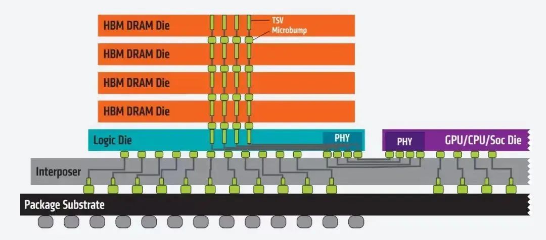 HBM的架构示意图(图源:AMD东方证券研究所)