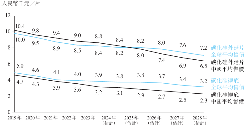 碳化硅外延片及衬底的平均售价趋势(资料来源:弗若斯特沙利文报告)