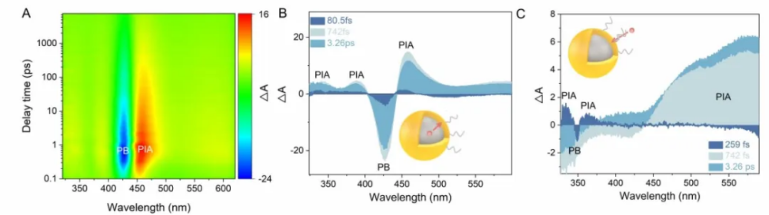 图2 量子点的飞秒瞬态吸收光谱及其对应的电子转移模式