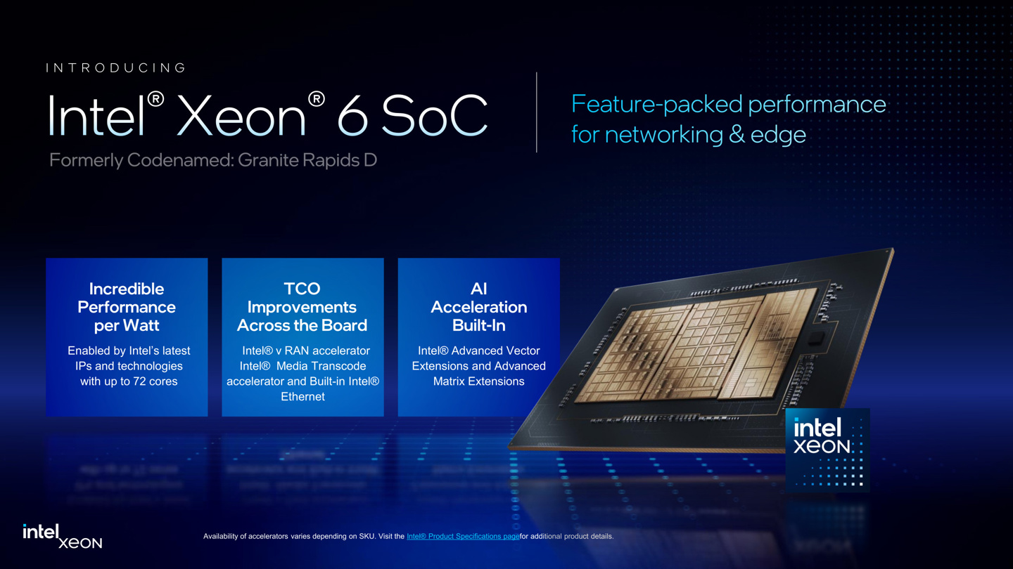 而在至强 6 SoC 方面,英特尔在其 I/O 芯片中提供了多种专用 IP,包括 vRAN Boost、200Gbps 以太网、媒体转码加速器,结合 CPU 核心中的 AMX 能更好应对边缘和网络领域日新月异的工作负载。