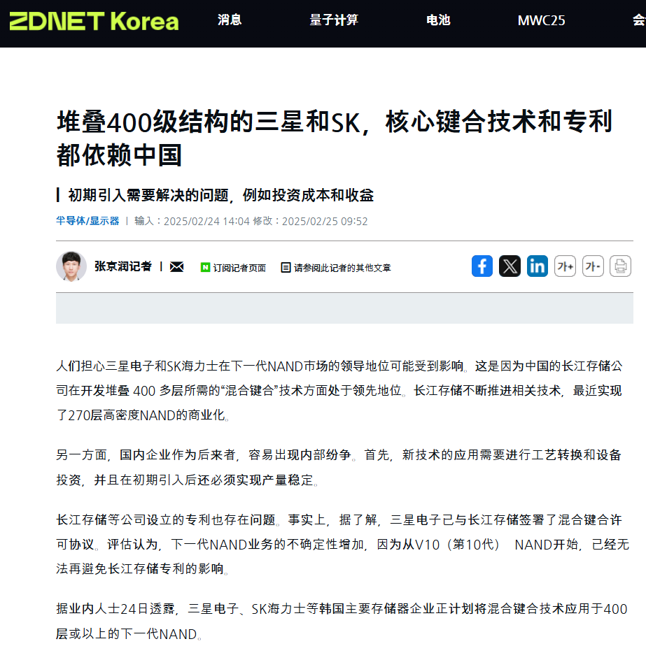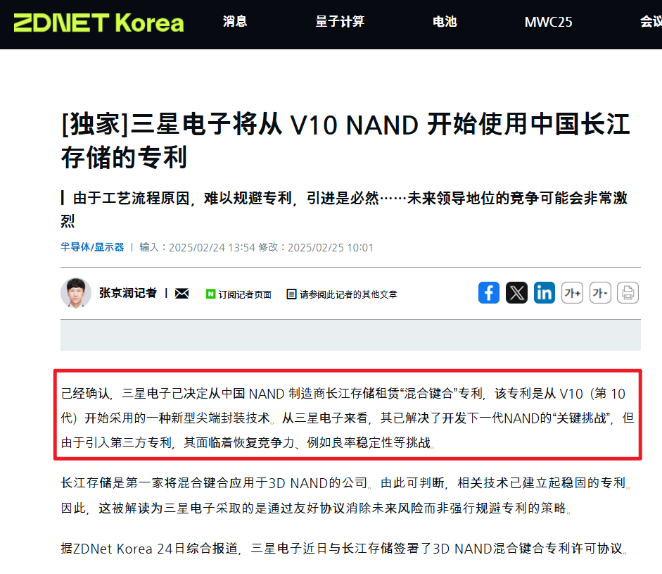 IT 之家,消息称三星与长江存储重磅合作,V10 NAND 将使用中国企业专利