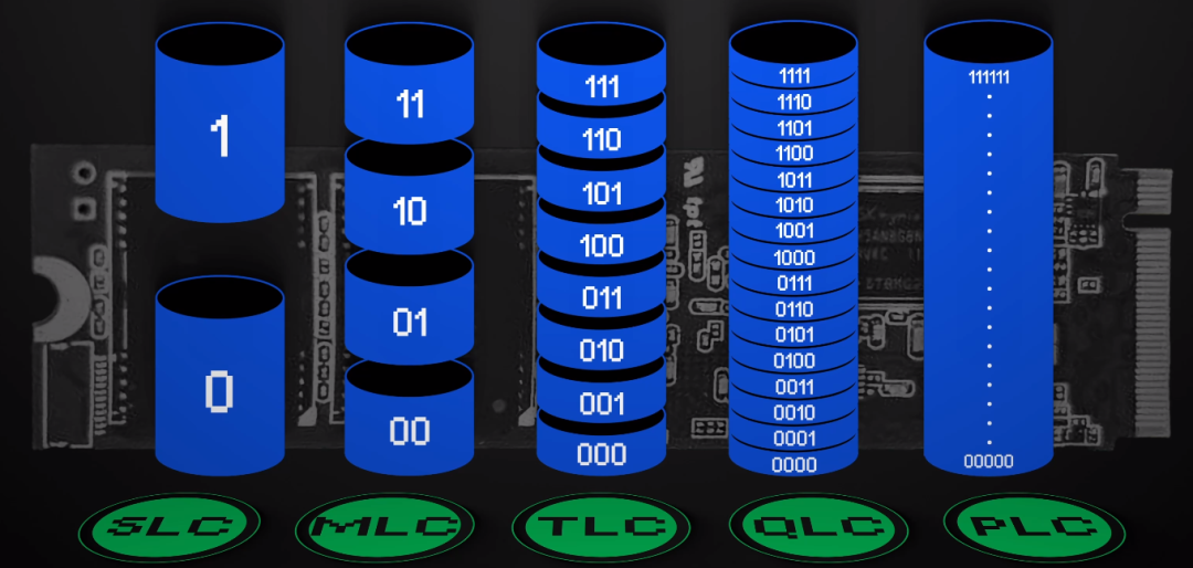 就好比一座房子,SLC 是一个房间只住个 1 人,读写速度快、寿命也长,但就是造价太高,MLC 则是一间房住 2 人,读写性能和成本都处于中间水平,而 TLC 和 QLC 则是分别住 3 和 4 人。