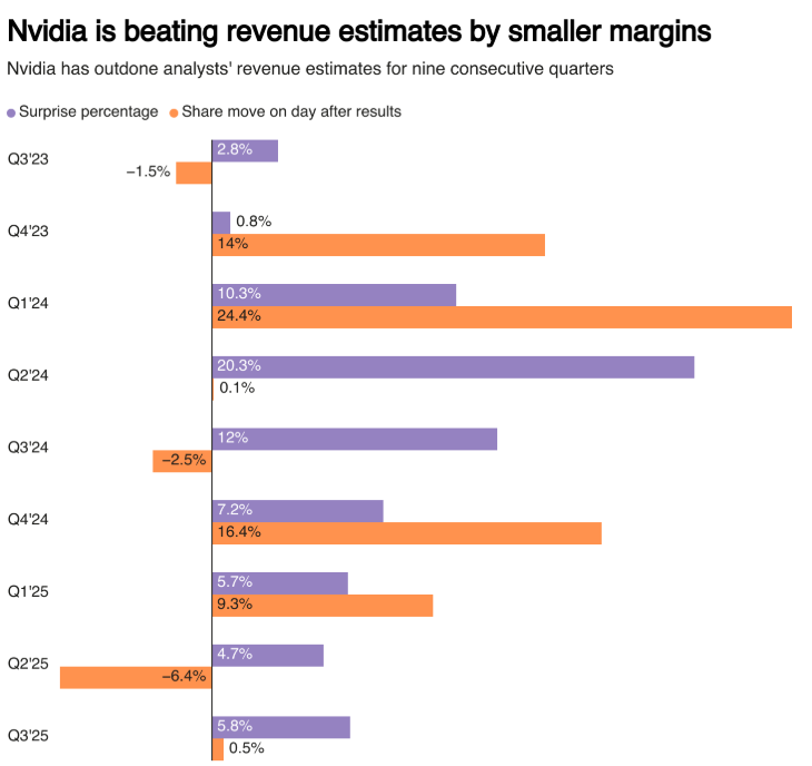 在过去五年中,英伟达的季度收入只有一次低于分析师的预期。最近几个季度,该公司的业绩超出预期10%以上,为其业绩设定了很高的标准。仅其数据中心部门目前的收入就超过了其竞争对手英特尔(INTC.US)和AMD(AMD.US)的收入总和。