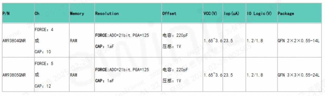 艾为在压感及电容独立芯片领域深耕多年,积累了丰富的行业经验与成熟的解决方案,此次推出的 AW938xx 系列芯片将为客户提供更加精准、高效的压感+电容二合一解决方案。