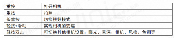 表1 iPhone16 “相机控制”按键功能