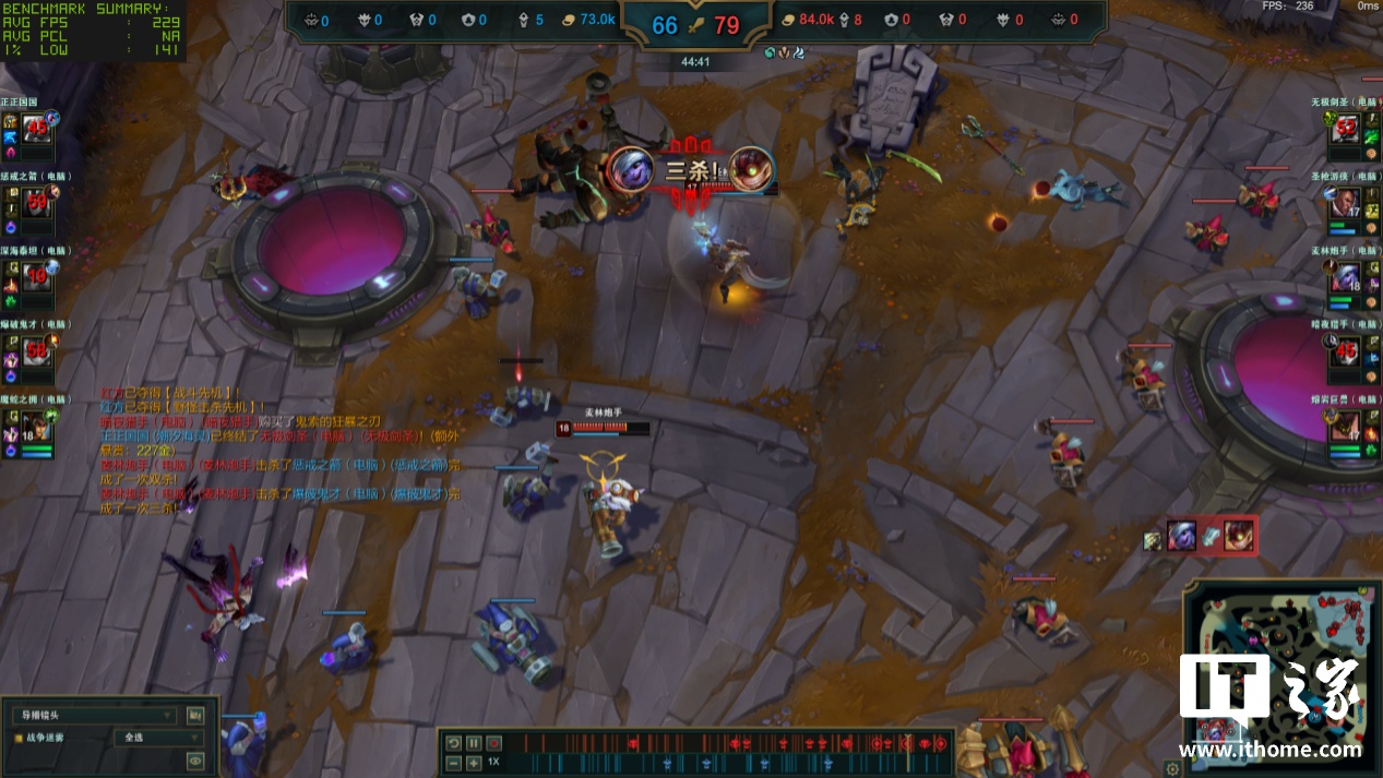 在另一款国民竞技游戏《英雄联盟》中,我们选择一段团战回放使用 FrameView 进行记录,Ultra 5 230F 平均帧数达到了 229 帧,1% Low 帧为 141 帧,对普通玩家来说都非常够用。
