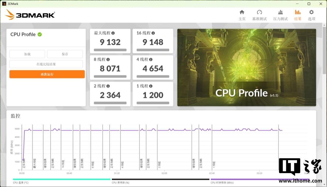 在 3D Mark CPU PROFILE 的跑分成绩上,Ultra 5 230F 的全核心最大线程分数为 9132 分,单核心分数也有 1200 分。