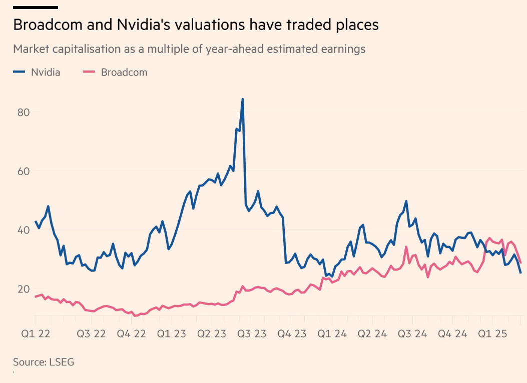 投资者认可这种乐观预期。根据路孚特的数据,博通的估值是今年预期销售额的15倍,这一倍数是其10年平均水平的两倍。自去年11月美国大选以来,博通股价上涨了16%;而英伟达股价则下跌了大致相同的幅度。在数据中心领域,两家公司都有发展空间。在选股者的投资组合中,博通正逐渐占据优势。(作者/陈俊熹)