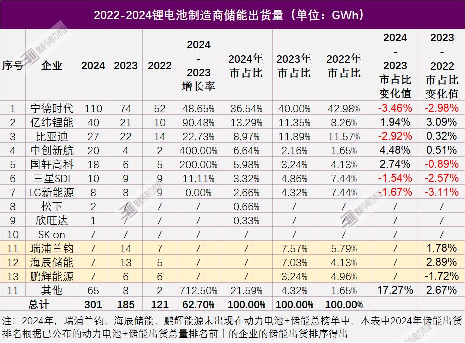 另一个案例则是比亚迪。尽管看起来去年在排行榜上的位置被亿纬锂能超过,但这其实是因为亿纬锂能去年的增速极快,比亚迪自身的行业地位并没有被削弱。