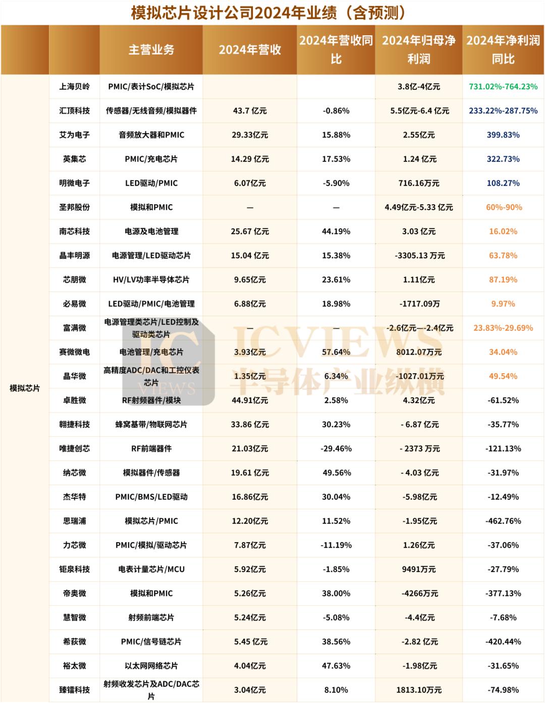 反观模拟芯片,仅有1家公司净利润营收同比增幅超 500%,4 家公司净利润营收同比增幅超 100%。