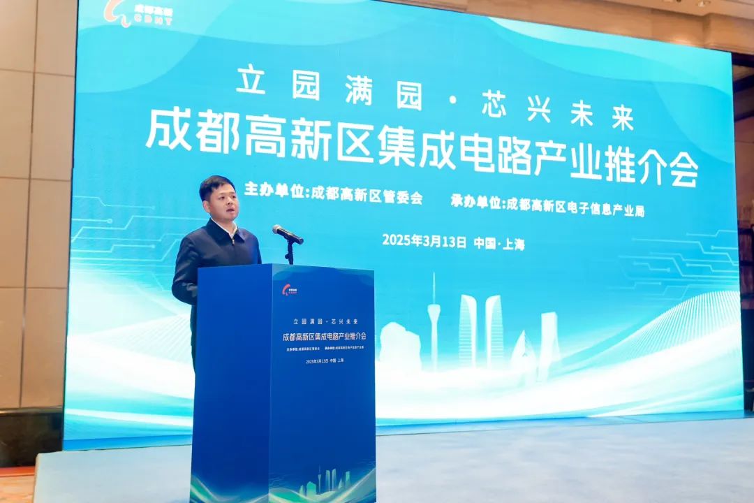 会上,成都高新区电子信息产业局相关负责人从产业集聚、区位优势、未来布局等方面开展了成都高新区集成电路产业推介并详细介绍了《成都高新技术产业开发区关于支持集成电路产业高质量发展的若干政策》,并表示,在成都高新区,每一颗芯片都承载着创新的力量,每一个园区都见证着产业的腾飞,期待能与在座的各位企业家朋友携手,共同开创美好未来。