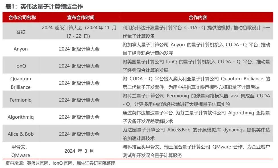 一年之前的2024年3月,英伟达宣布基于开源CUDA-Q量子计算平台推出量子云;到2024年11月,英伟达宣布与多家量子计算公司达成合作,引发了美国量子计算概念股暴涨,多支股票翻倍上涨。
