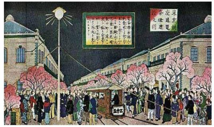 图注:1882年东京银座的电灯(BY爱迪生)