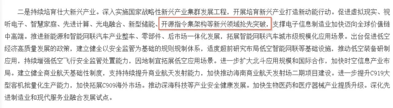 2025 年全国两会期间,开源指令集架构 RISC-V 成为热议焦点。国家发改委在报告中提及“促进虚拟现实、视听电子、智慧家庭、先进计算、光电融合、新型储能、开源指令集架构等新兴领域抢先突破”。