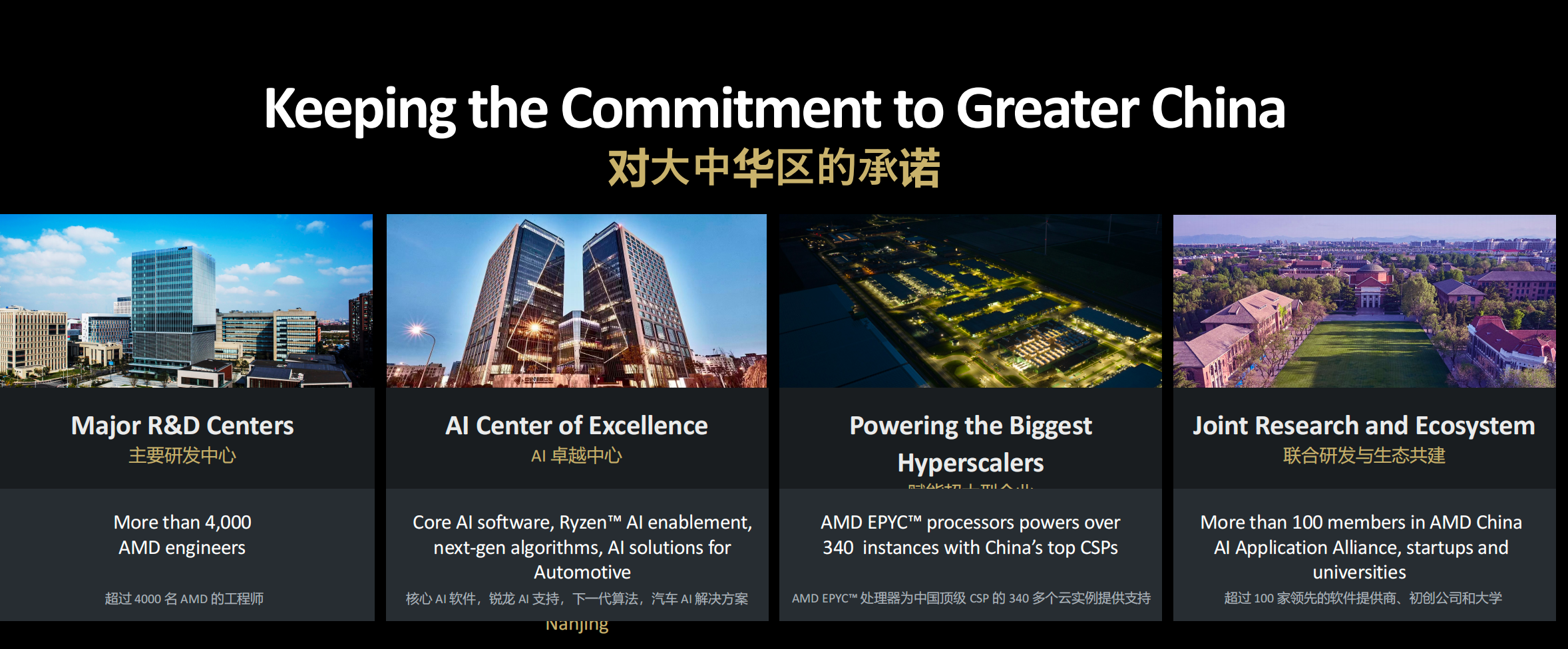 四是合研发与生态共建。目前AMD在中国与超过100家领先的软件提供商,初创公司和大学展开合作。