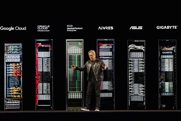 黄仁勋表示,预期今年下半年起,合作伙伴包括Aivres、华擎、华硕、鸿海集团、技嘉、英业达、和硕、云达科技、纬创与纬颖、思科、戴尔、慧与科技、联想与AMD等公司,都将推出各种搭载Blackwell Ultra产品的服务器。