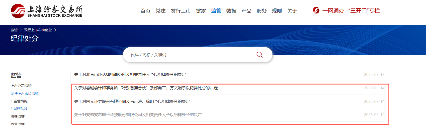 近日,上交所连发三份纪律处分决定书,对安徽安芯电子科技股份有限公司(以下简称“安芯电子”)及其保荐机构国元证券、审计机构容诚会计师事务所等主体作出严厉处罚。
