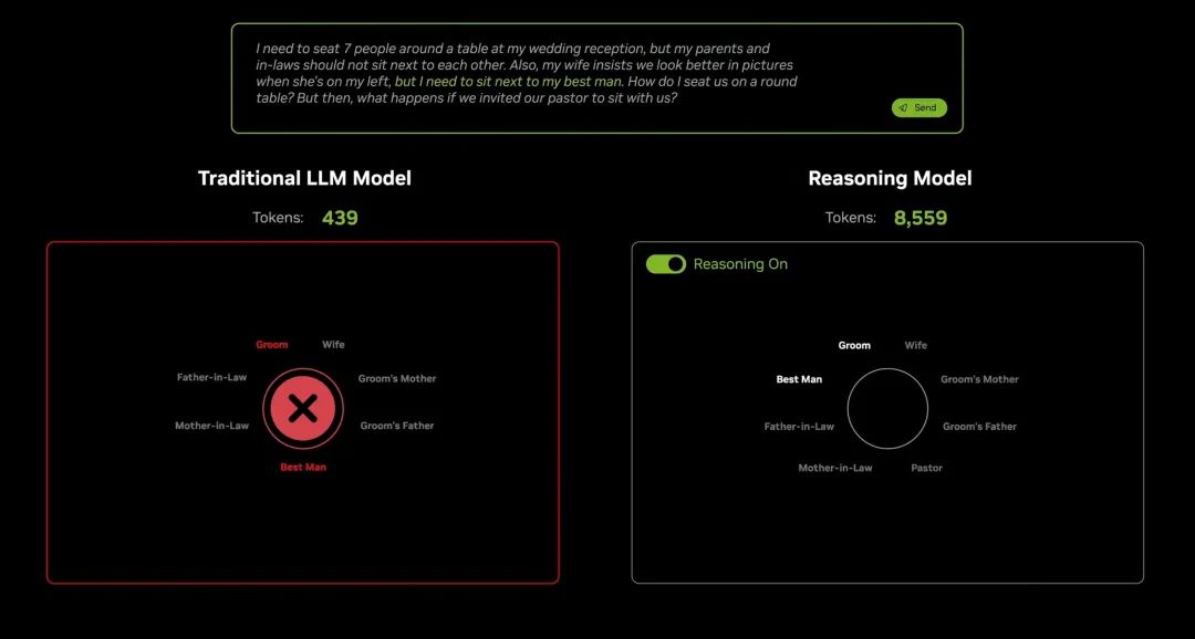 DeepSeek-R1 的 Reasoning 模型给出了近 20 倍于传统大模型的 Token 量|图片来源:英伟达