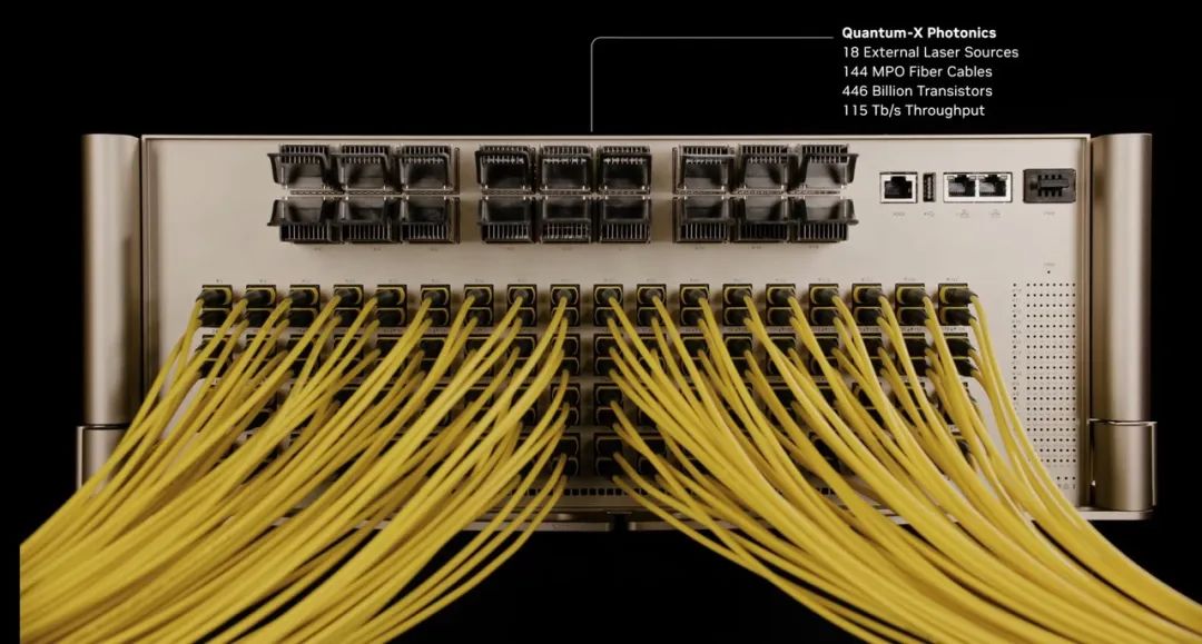 Quantum-X InfiniBand 交换机采用特殊的线缆来加速运行 | 图片来源:英伟达