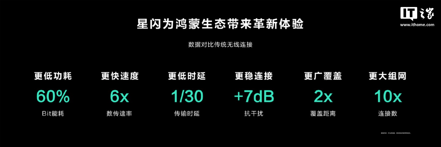 据此前报道,在 2023 年 8 月的 HDC.Together2023 上,余承东表示,星闪相比传统无线连接,功耗降低至 60%,数传速率达到 6 倍,时延降低至 1/30,连接数达到 10 倍。