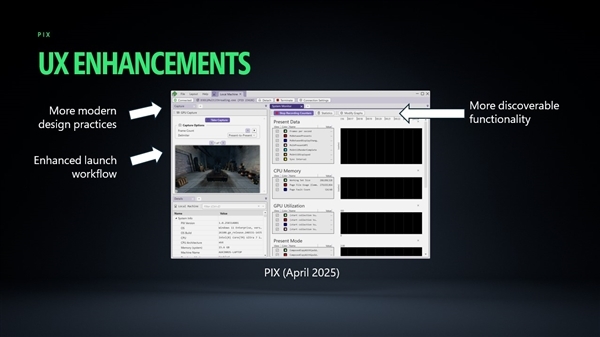 DirectX调试分析工具PIX已经第一时间支持DXR 1.2,并提供全新API预览版、自定义可视化工具、UX界面优化。