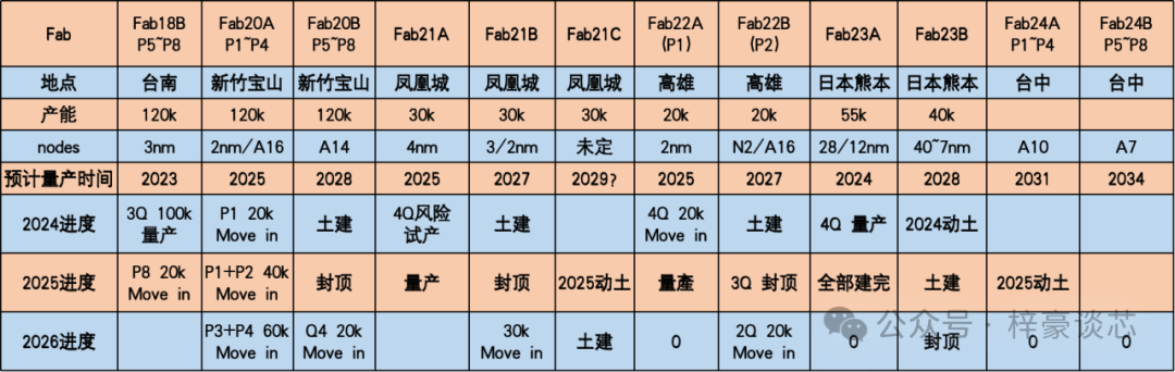 台积电新建产能进度表