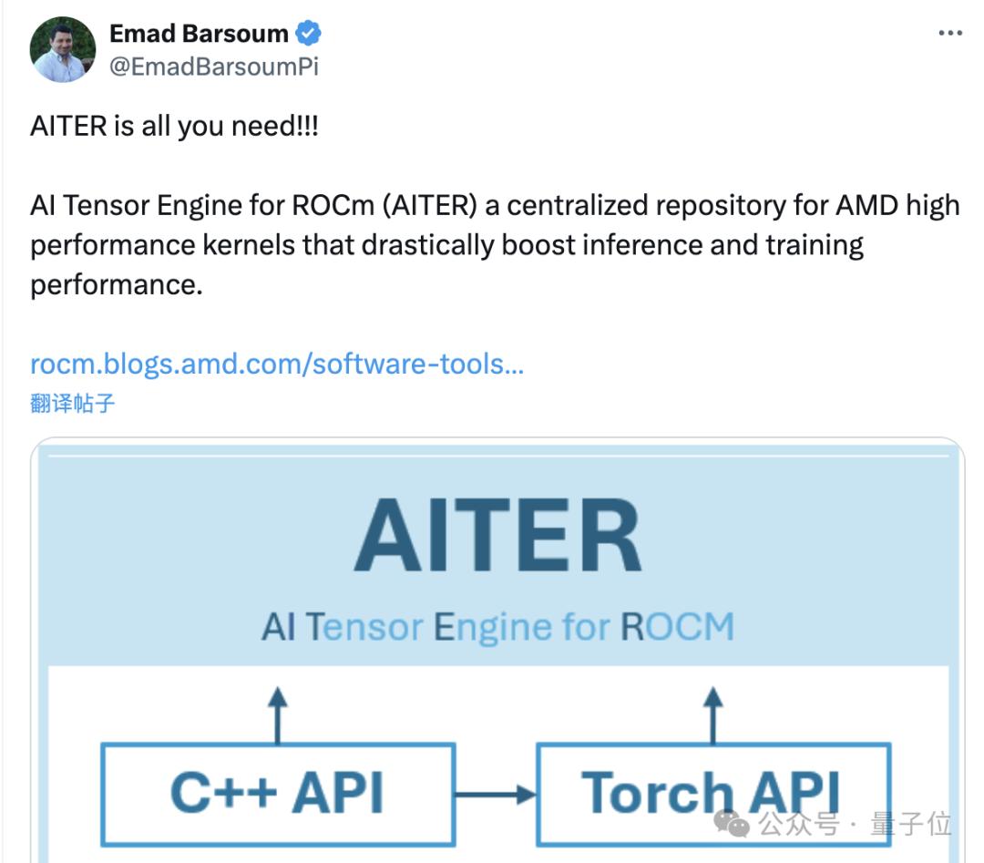 AITER可以用来加速GPU训练和推理,AMD副总裁Emad Barsoum直接喊出了AITER is all you need。