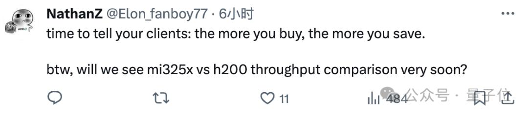 看到MI300X的表现,有人拿出了老黄经典的那句“买的越多省的越多”,表示现在这句话该让AMD来说了。