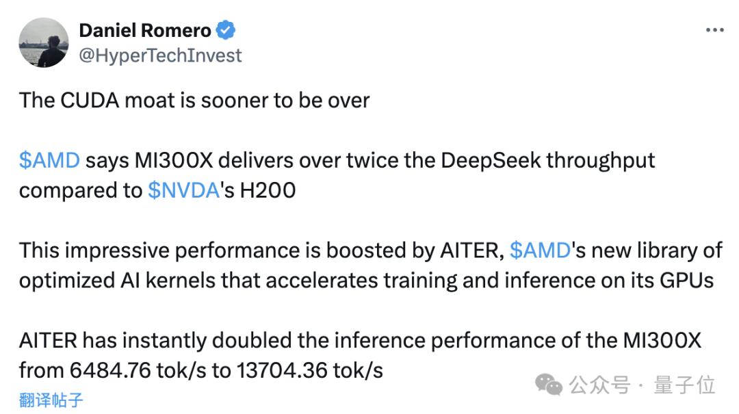 还有网友表示,英伟达CUDA的护城河要终结了。