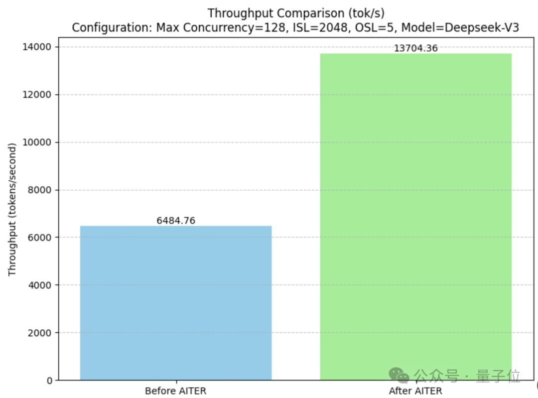 开启AITER后,MI300X上DeepSeek-V3的吞吐量是开启前的两倍多。