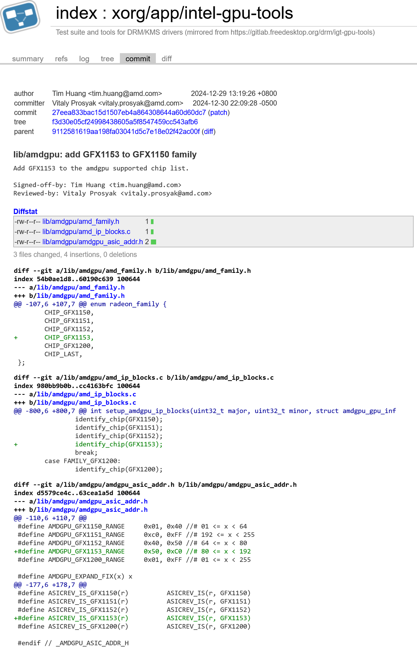 而根据 AMD 工作人员 2024 年底向 DRM 驱动开发和测试工具 IGT GPU Tools 添加的代码,GTX1150 家族又迎来了一位新成员:GFX1153,该代号应属于另一款尚不明确的处理器的核显。