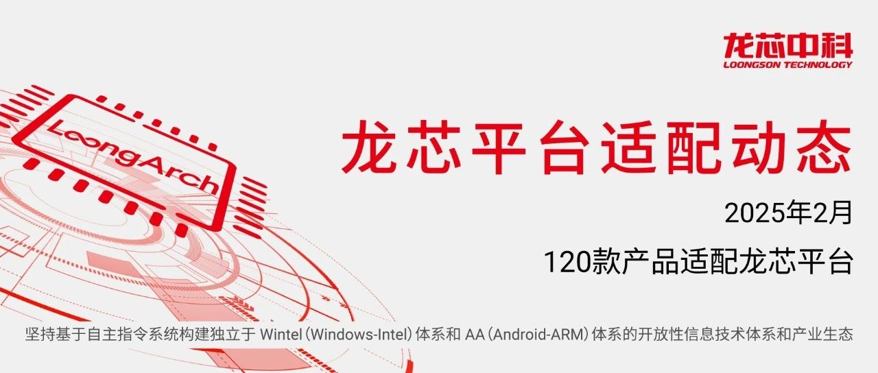 IT之家 3 月 26 日消息,龙芯中科今日公布 2025 年 2 月龙芯桌面和服务器平台产品适配情况:新增 120 款适配产品,其中包括微信 V4.0.1.12、WPS 办公软件 V12.8.2.1119 等。