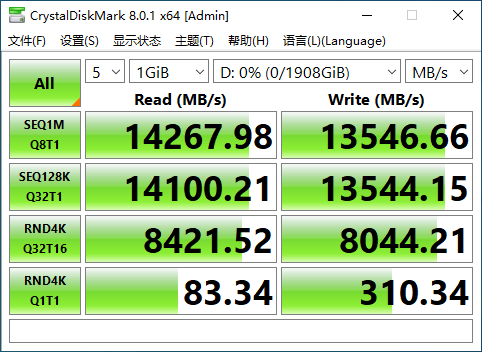 参数方面,时创意 S14000 Pro 固态硬盘容量至高可达 4TB,最快顺序读写速率分别能达到 14GB/s 和 13GB/s,随机读写上限也都突破了 2M IOPS,属于客户端 PCIe 5.0×4 SSD 中的顶尖级别。