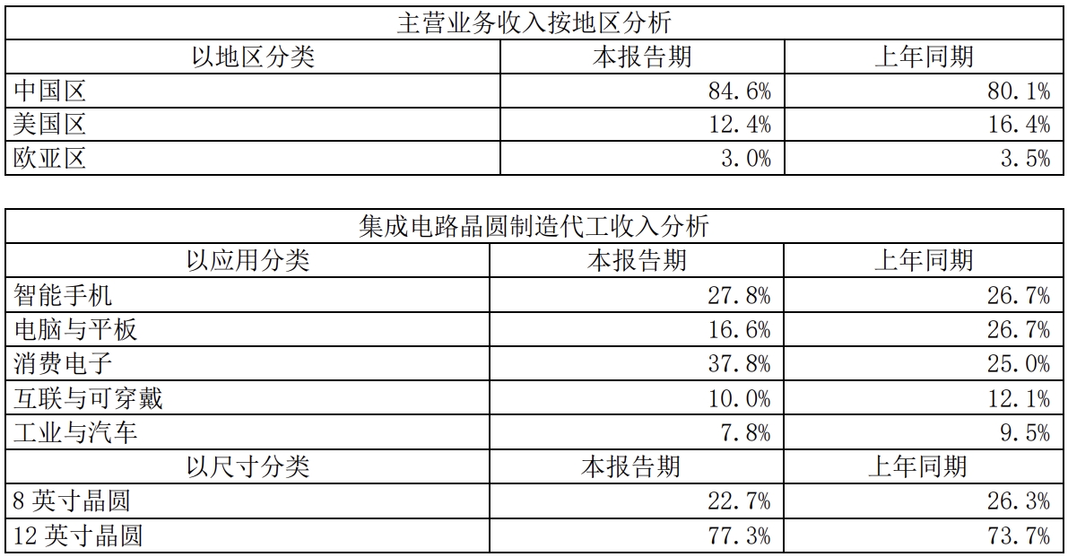 2024年,中芯国际晶圆代工制造收入按应用分类,消费电子收入占比从25.0%大幅提升至37.8%,成为最大增长点;电脑与平板业务从26.7%降至16.6%,显著萎缩;智能手机、互联与可穿戴及工业与汽车业务占比变化较小。按尺寸分类,12英寸晶圆收入占比从73.7%升至77.3%,市场需求持续增长;8英寸晶圆占比从26.3%降至22.7%,需求有所减少。
