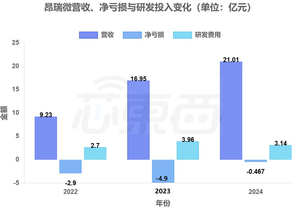昂瑞微营收、净亏损及研发投入变化(芯东西制图)