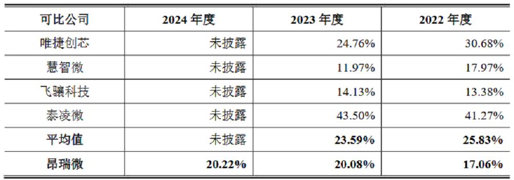 昂瑞微与可比公司毛利率情况(图源:昂瑞微招股书)
