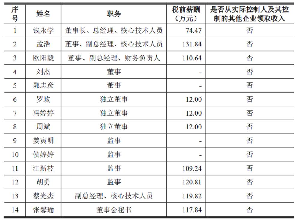 2024年,昂瑞微现任董事、监事、高级管理人员及核心技术人员领取薪酬情况(图源:昂瑞微招股书)